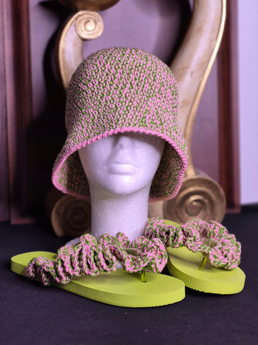 Bucket Hat & Ruffle Flip Flop Set